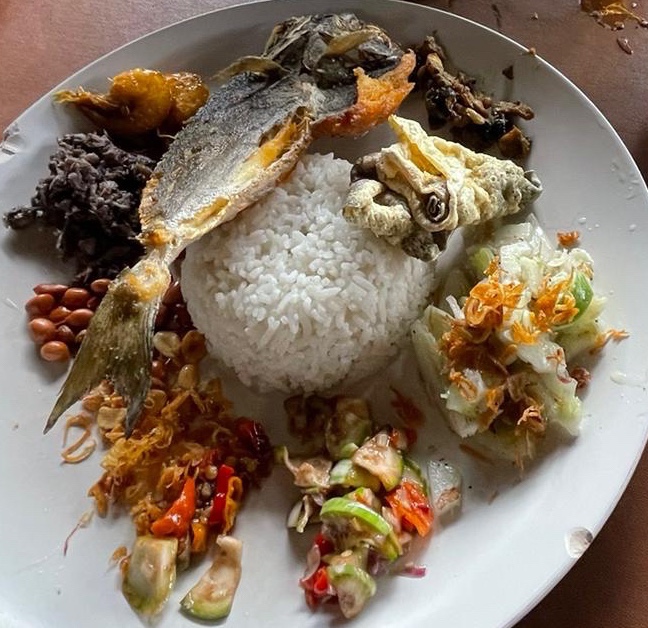 This brief respite from the cavitating cacophony of Sanur’s main drag, it’s pulsating push and pull was very welcome. Pulsating street life is magnetic, but a brief escape to some silence, a cool breeze and a Seafood Nasi Campur Special is revitalising as well as audibly mmmm delicious.