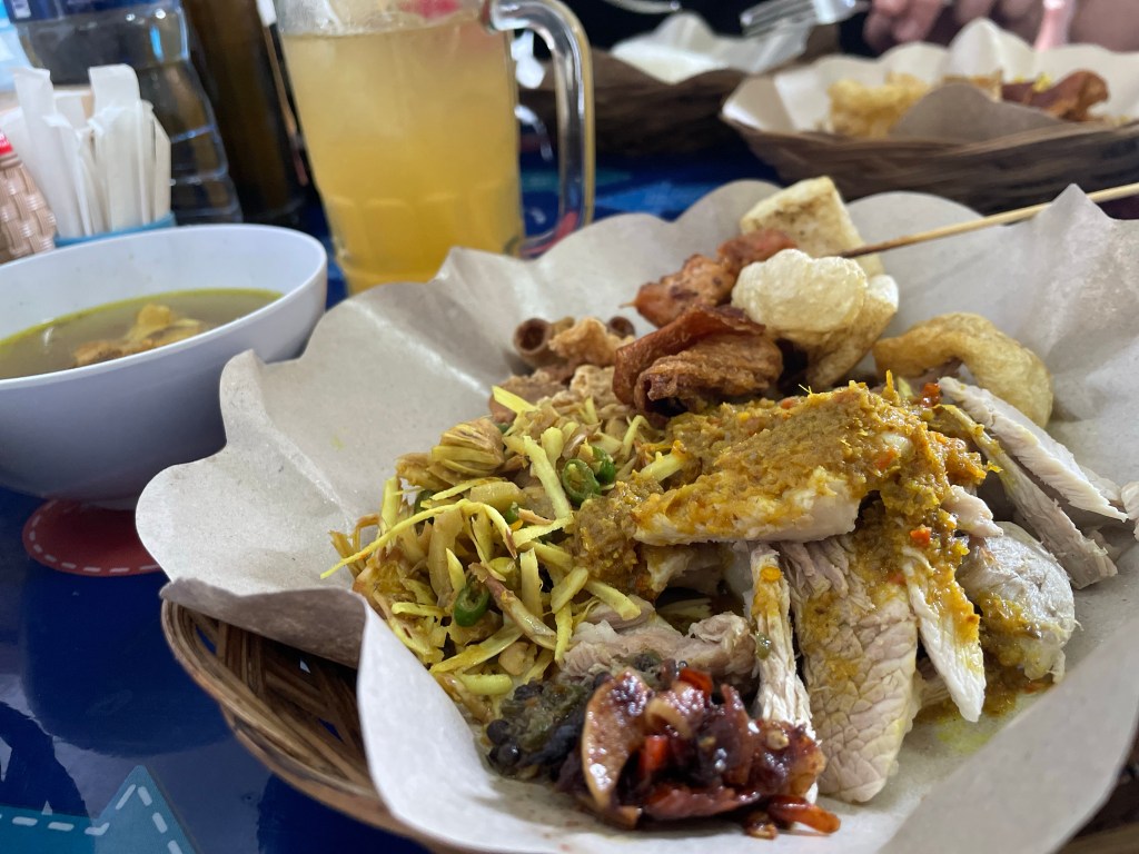 Let’s start on the outside. There is the obligatory crackling. I thought Germans had that covered, but I had the best-ever crackling done Balinese style. Intestines and offal are either deep-fried for the texture or made into flavoursome sausages. The meat is shredded or finely cut and elevated with Balinese spices such as Lemongrass, Coriander and Turmeric. There is of course Sate and the dish, as always, is complete only with a small amount of vegetables, sambal and rice.