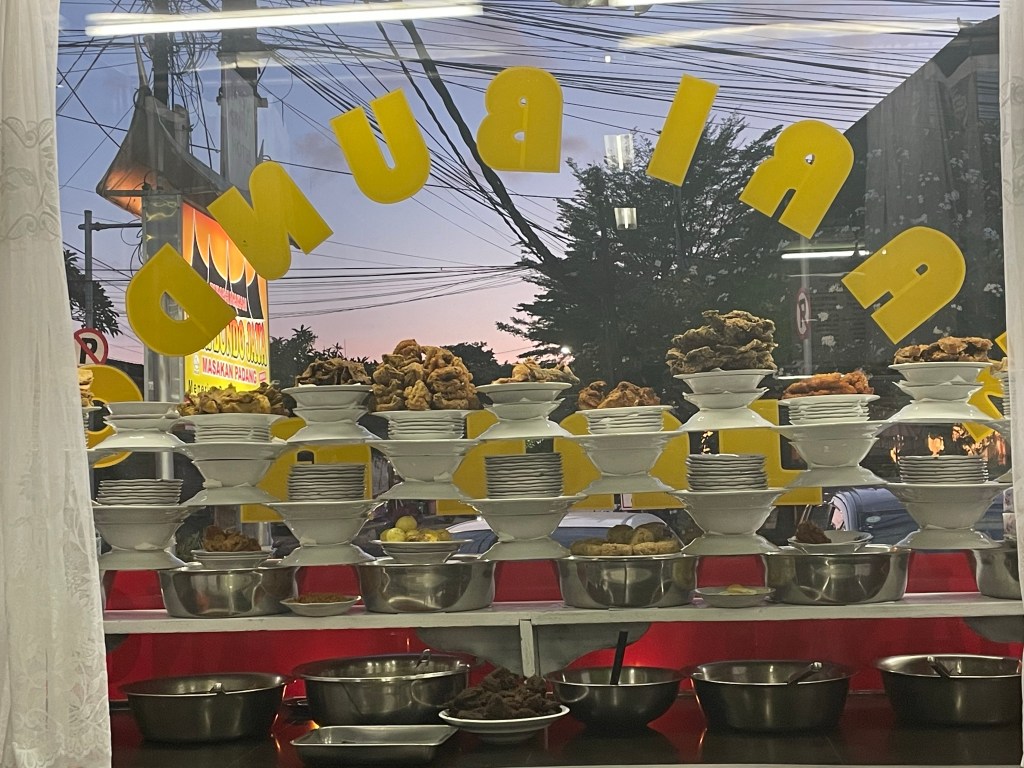 You get a blob of rice and then choose whichever tasty morsel to go with – beef Rendang, fried or barbecued chicken, curried eggs, potato cakes, jackfruit in fragrant sauce, or sayur (tapioca leaf), crispy fried shrimp and fish.