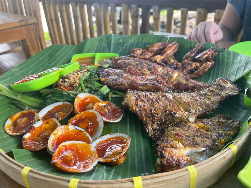 The way the Balinese prepare a seafood platter is a must-try, little mounds of vegetables such as water spinach (Kankung), assorted sambals, peanuts and seafood grilled on coconut husk framing the obligatory rice (nasi putih).